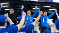 (안산=뉴스1) 이재명 기자 = 이재명 더불어민주당 대통령 후보가 24일 오후 경기도 안산시 단원구 안산문화광장에서 세월호 참- 2025-05-24 19:50