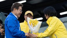 '프리지아' 꽃 들어 보이는 이재명