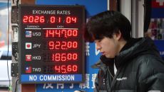 (서울=뉴스1) 이광호 기자 = 4일 서울 중구 명동의 환전소에서 외국인 관광객들이 환전을 하고 있다. 지난해 원/달러 환율- 2026-01-04 13:20