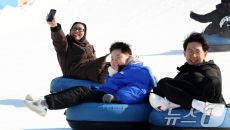 (서울=뉴스1) 박지혜 기자 = 4일 서울 광진구 뚝섬한강공원 눈썰매장을 찾은 외국인관광객이 눈썰매를 타며 즐거운 시간을 보내- 2026-01-04 13:19