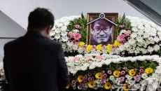 (서울=뉴스1) 박지혜 기자 = 5일 서울 중구 서울영화센터에 마련된 고 안성기의 추모 공간을 찾은 시민이 조문을 하고 있다.- 2026-01-05 19:24