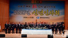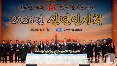 (포항=뉴스1) 최창호 기자 = 이강덕 경북 포항시장과 나주영 포항상공회의소회장 및 내빈들이 5일 남구 효자 아트홀에서 열린- 2026-01-05 13:33