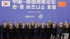 (베이징(중국)=뉴스1) 허경 기자 = 이재명 대통령이 5일 중국 베이징 조어대에서 열린 한중 비즈니스포럼에서 참석자들과 기념- 2026-01-05 13:10