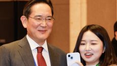취재진과 기념촬영 하는 이재용 회장