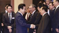 중국 기업인들과 악수하는 이재명 대통령