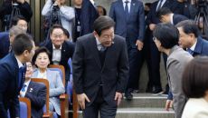 [서울=뉴스핌] 윤창빈 기자 = 이재명 더불어민주당 대표가 4일 오후 서울 여의도 국회에서 열린 비상의원총회에서 참석하며 동료- 2025-04-04 14:58