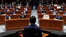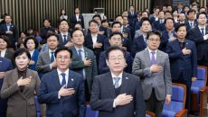 [서울=뉴스핌] 윤창빈 기자 = 이재명 더불어민주당 대표와 소속 의원들이 4일 오후 서울 여의도 국회에서 열린 비상의원총회에서- 2025-04-04 14:58