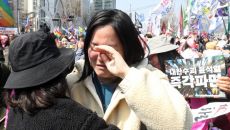 윤석열 탄핵 기쁨의 눈물 보이는 참석자