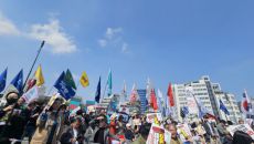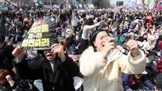 [서울=뉴스핌] 최지환 기자 = 헌법재판소가 윤석열 대통령 탄핵을 인용한 4일 오전 서울 종로구 헌법재판소 인근에서 집회를 연- 2025-04-04 12:22