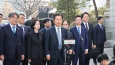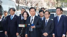 [서울=뉴스핌] 사진공동취재단 = 윤석열 대통령의 탄핵심판 선고기일인 4일 오전 정청래 단장 등 탄핵소추단이 서울 종로구 헌법- 2025-04-04 11:52