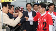 서울역에서 지지자들과 인사하는 김문수 후보