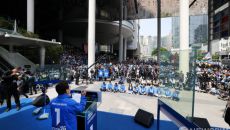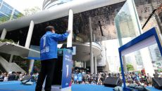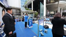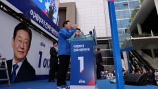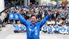 용산역 앞에서 유세 펼치는 이재명 후보