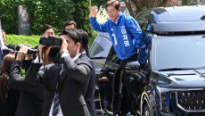 [서울=뉴스핌] 윤창빈 기자 = 이재명 더불어민주당 후보가 19일 오후 서울 용산구 용산역 광장에서 집중 유세를 위해 유세장으- 2025-05-19 16:20