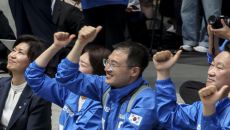 [서울=뉴스핌] 윤창빈 기자 = 더불어민주당에 입당한 김상욱 의원이 19일 오후 서울 용산역 광장에서 이재명 더불어민주당 대선- 2025-05-19 15:38