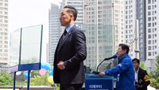 이재명, 용산서 '방탄 유리' 유세