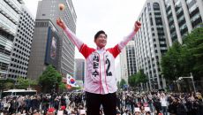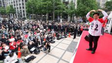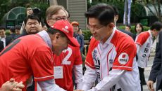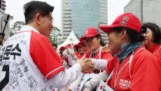 유세단과 악수 나누는 김문수 후보