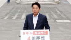 광화문광장에서 기자회견 진행하는 이준석 후보