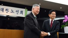 [서울=뉴스핌] 최지환 기자 = 김문수 국민의힘 대선 후보와 이중근 대한노인회장이 19일 서울 중구 부영 태평빌딩에서 열린 대- 2025-05-19 10:23