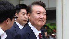 취재진 질문에 말없이 웃음짓는 윤석열 전 대통령
