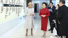 [사진] 중프 영부인들, 중국 공연 선전물 관람