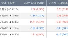 [장중수급포착] 우진, 외국인/기관 동시 순매수… 주가 +10.21%