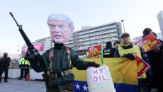 트럼프 규탄대회 참석한 베네수엘라 대사대리