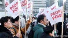 [서울=뉴스핌] 최지환 기자 = 5일 오전 서울 종로구 광화문광장에서 열린 참여연대 2026 신년 기자회견에서 참가자들이 피켓- 2026-01-05 11:07
