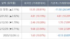 [서울=뉴스핌] 로보뉴스 = 05일 10시 15분 현재 유일에너테크(340930)는 전일 대비 13.44% (현재가 2,085- 2026-01-05 10:19