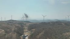 지난 23일 경북 영덕 풍력발전기 화재 당시 손상된 채 매달려 있던 날개 한 개가 26일 지상으로 추락해 발전기 아래 산림 일- 15분전