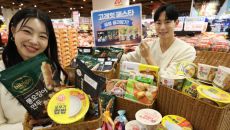 5일 서울 용산구 이마트 용산점에서 모델들이 간편식과 즉석식품 등이 포함된 할인 행사인 '고래잇 페스타'를 소개하고 있다. 이- 2026-01-05 13:02