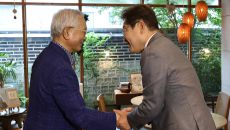 ‘盧·文 멘토’ 송기인 신부 만난 李 “한반도 평화 문제 심각, 외교적 성과 내면 좋겠다 해”