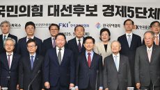 국민의힘 김문수 대선 후보가 22일 서울 중구 대한상공회의소에서 열린 경제 5단체장 간담회에 앞서 참석자들과 기념촬영을 하고- 2025-05-22 23:11