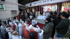 해봉당 자승 대종사 영결식이 3일 서울 종로구 조계사에서 종단장으로 엄수됐다. 자승 스님의 노제가 일주문에서 봉행되고 있다.- 2023-12-03 14:26