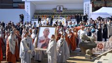3일 서울 종로구 대한불교조계종 총본산 조계사에서 제33대·제34대 총무원장 해봉당 자승 대종사 종단장 영결식이 열리고 있다.- 2023-12-03 14:05