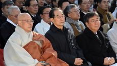 조계종 총무원장 진우스님(왼쪽부터)과 한덕수 국무총리, 김대기 대통령실 비서실장 등이 3일 서울 종로구 대한불교조계종 총본산- 2023-12-03 14:05