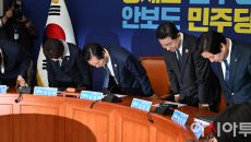 아시아투데이 송의주 기자 = 정청래 더불어민주당 대표와 김병기 원내대표를 비롯한 최고위원들이 15일 국회에서 열린 최고위원회의- 2025-12-15 11:55