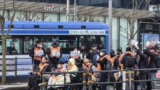 아시아투데이 설소영 기자 = 전국장애인차별철폐연대(전장연)가 27일 오전 서울 광화문 일대에서 버스 탑승 시위를 벌이면서 출근- 3시간전