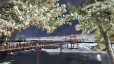 괴산 첫눈에 '에코브릿지' 은빛 장관… 겨울밤 정취 '물씬'