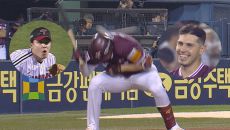 헤드샷 맞았는데 웃고 있어요…임찬규 커브 맞은 카디네스