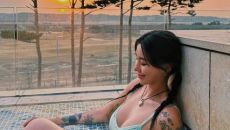 '돌싱' 전다빈, 터질듯한 볼륨감…수영복이 작아보여