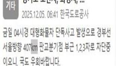 경부선 서울방향 판교분기점 부근에서 통제가 벌어지고 있다. 한국도로공사는 4일 "금일 오전 4시께 대형화물차 단독사고 발생으로- 14시간전