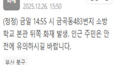 부산 북구 소방학교 부근에서 화재가 발생했다. 부산 북구청은 26일 오후 3시 50분께 "금일 오후 2시 55분께 금곡동 48- 2025-12-26 15:41