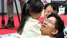 어린이와 함께 미소짓는 김문수 국민의힘 대선 후보 [포토]