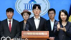 [이용우 기자] (서울=국제뉴스) 탈북자 출신인 국민의힘 박충권 의원이 16일 오전 국회 소통관에서 탈북자 단체들의 김문수 대- 2025-05-16 11:00