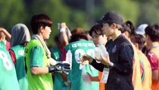 대전대덕대의 플레잉 골키퍼 코치 다케나카 레이(오른쪽)가 23일 경남 합천에서 열린 ‘2025 스포츠케이션 명품도시 합천에서- 2025-06-23 18:24
