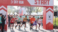 하늘까지 뛰어! 국내 최고높이 123층·555m·2917개 계단 오르는 '스카이런' [뉴시스Pic]