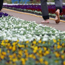 알록달록 꽃들 사이 맨발로 맞이하는 봄