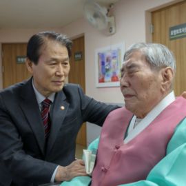 오성규 애국지사 위문하는 권오을 보훈부 장관