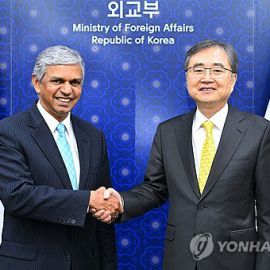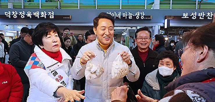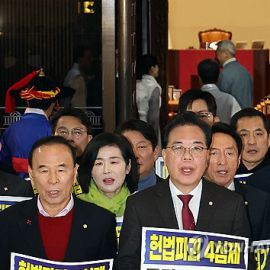 규탄집회중인 국민의힘 지나가는 민주당 의원들