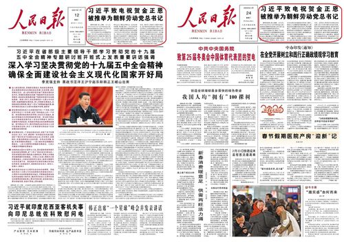 中인민일보, 시진핑의 김정은 총비서 재추대 축전 1면에 보도